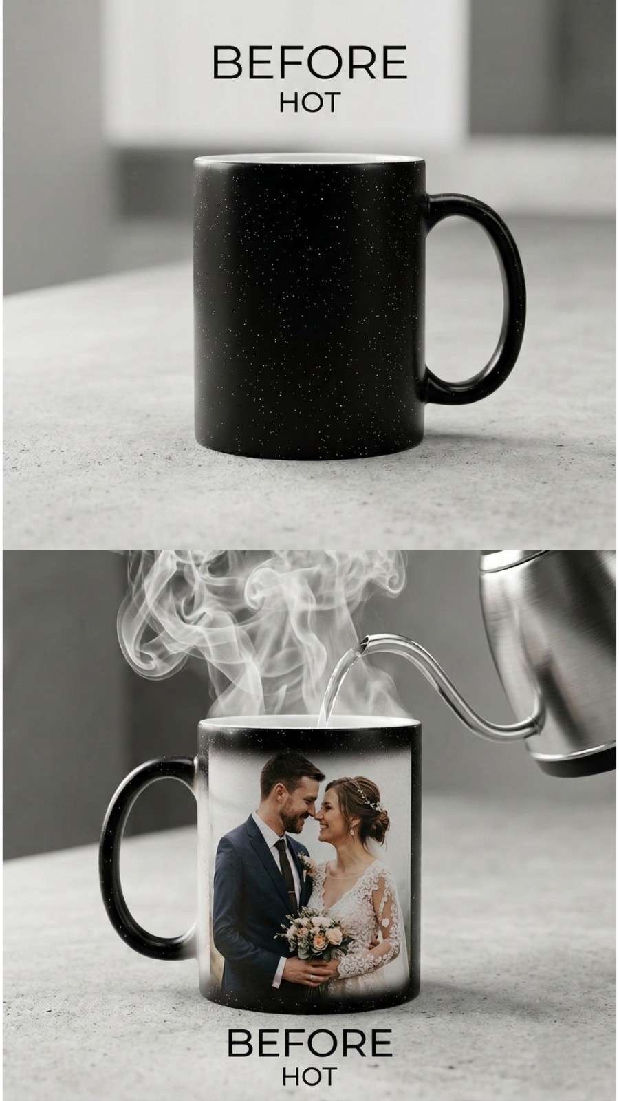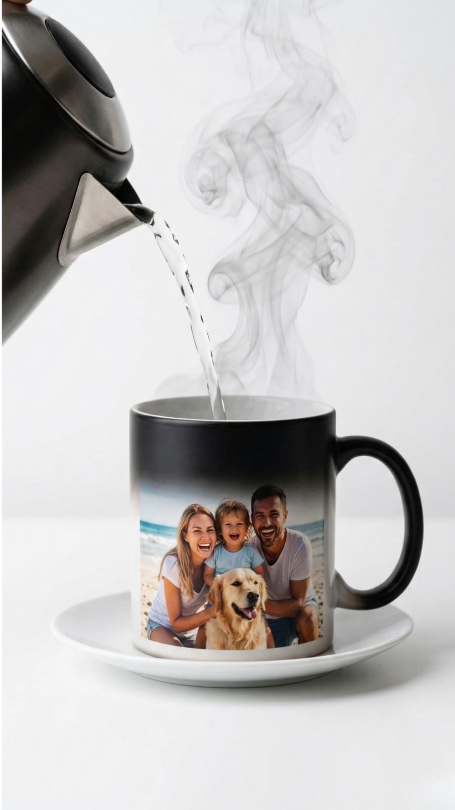 Heat Sensitive Magic Mug – Reveals your hidden photo when hot water is poured.