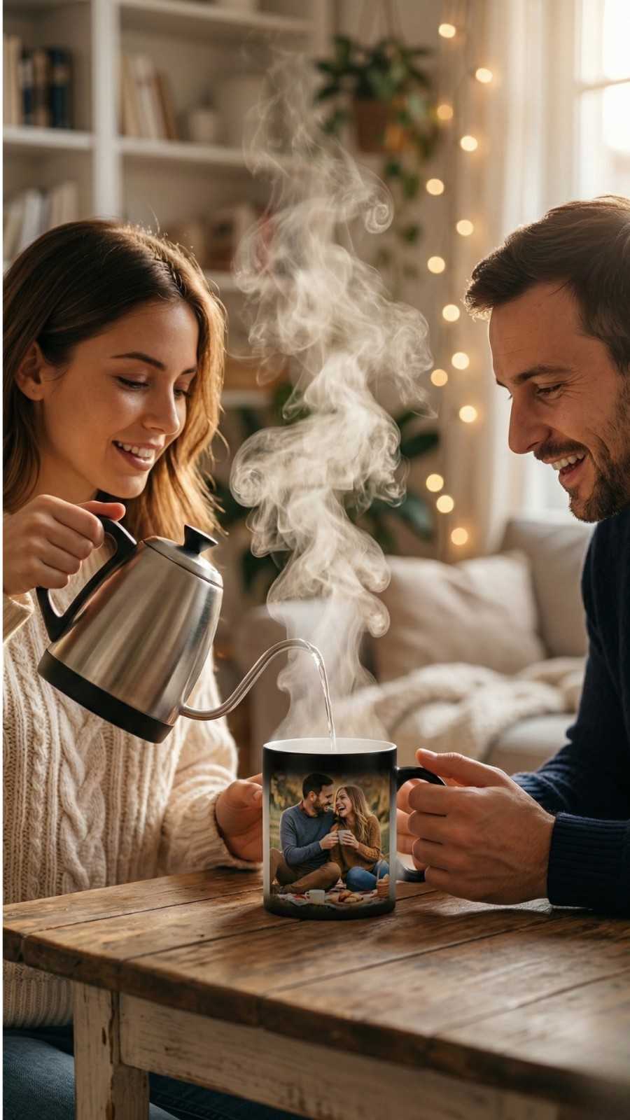Magical Color Change Effect – Photo appears clearly with hot beverages like tea or coffee.