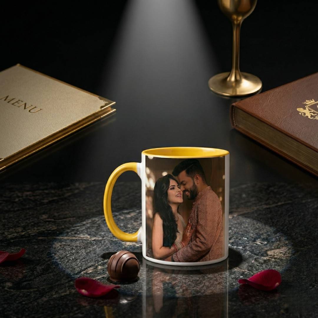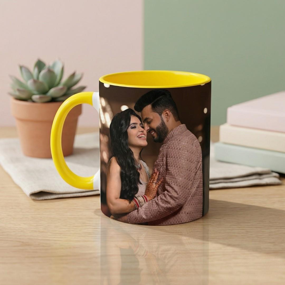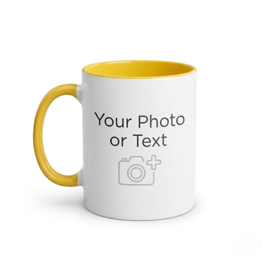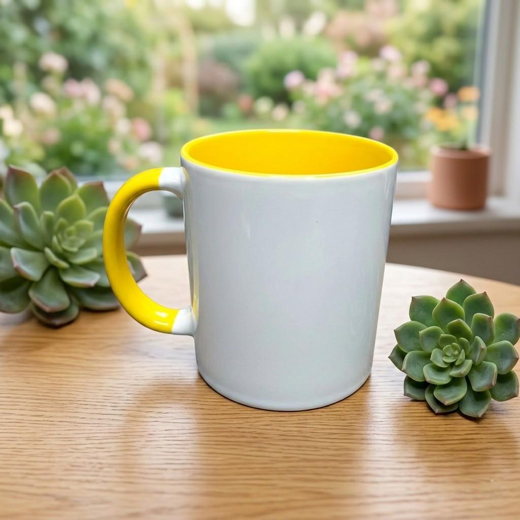 Bring a burst of sunshine to your coffee table with our Personalized Dual-Tone Yellow Ceramic Mug. Designed for those who love a pop of color, this mug features a classic white exterior for your custom designs, beautifully complemented by a vibrant yellow handle and interior glaze.